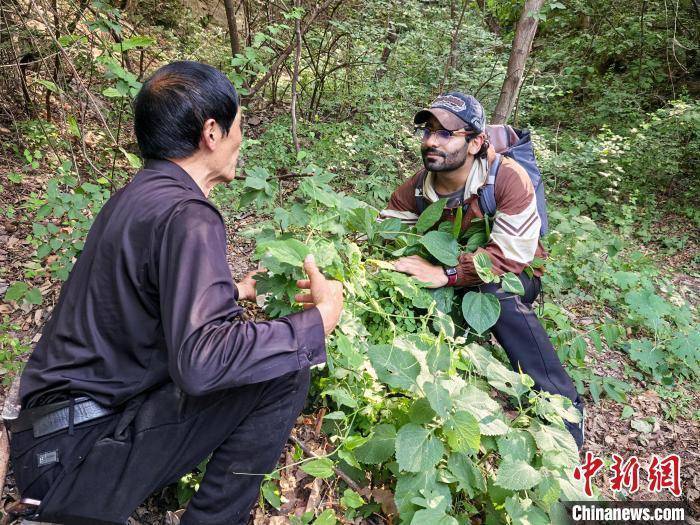 5月19日,河南新乡,巴基斯坦籍留学生乌斯曼在南太行山识药。 中新社记者 阚力 摄
