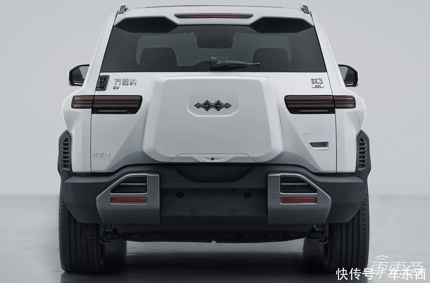 车尾方面,方程豹钛3配备一个四边形的“小书包”,在高位刹车灯两侧还有两个小扰流板盘算。