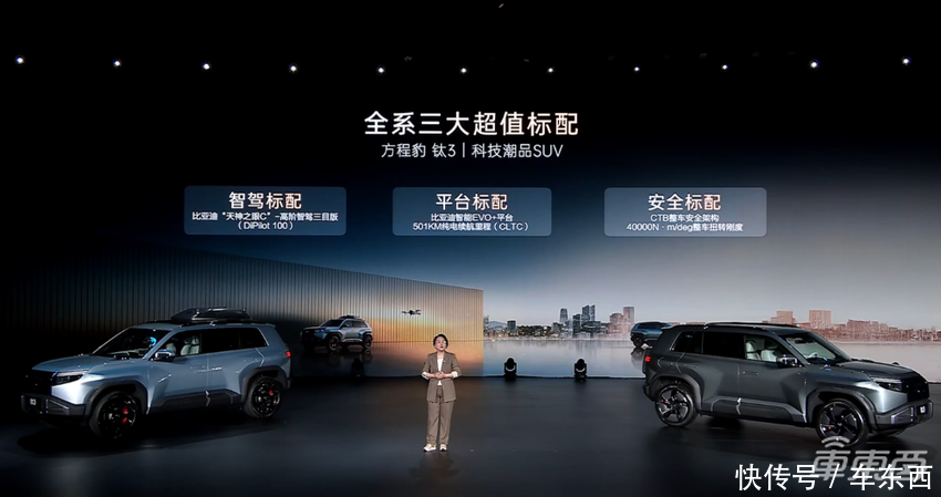 方程豹钛3是方程豹继豹系列之后推出的第二大产物系列中的首发车型,亦然方程豹品牌旗下首款纯电车型。跟着新车厚爱开启预售,方程豹品牌产物矩阵获得进一步完善。