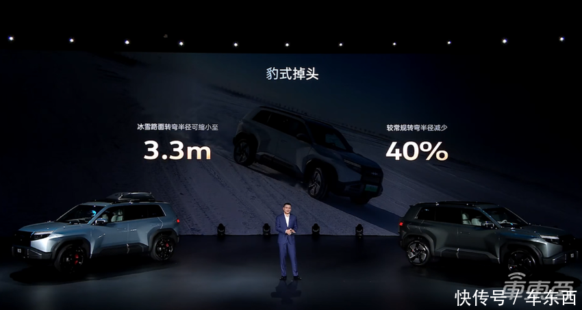 此外,新车还搭载豹式掉头功能,在雪地这种低幅度路面,它的转弯半径减弱至3.3米,比旧例转弯半径减小了40%。