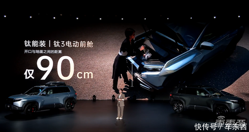 钛3前备箱通过漏斗阵势保证了宽度和深度,采取凹凸两体的架构,通过隔板不错分红两个空间,既能买通,又能遏制,保险了极高的得房率。此外,前备箱90cm的离地高度也相配适应老东谈主和小孩使用。
