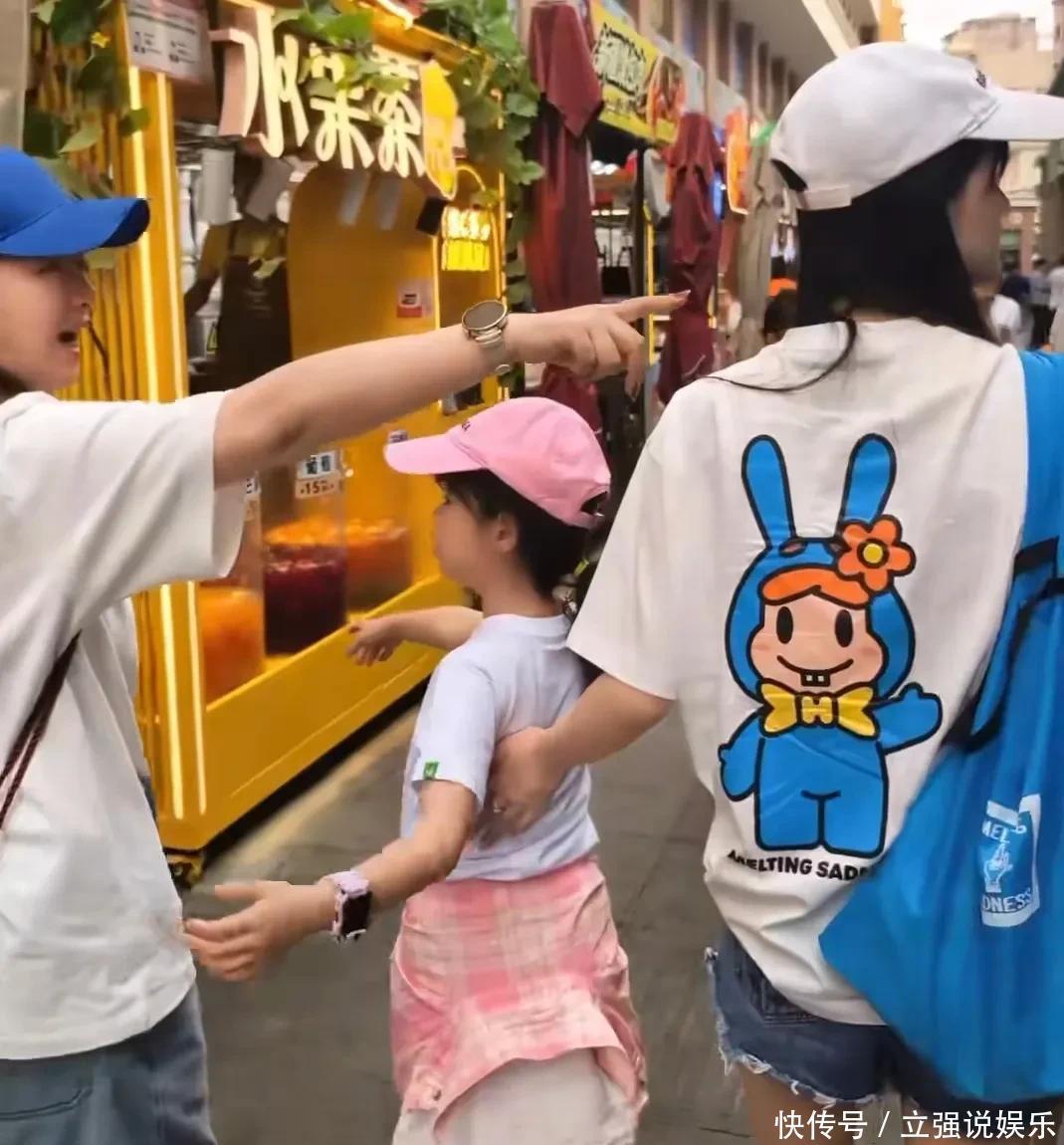 既然是全家出游,那天然少不了穿亲子装! 四个东谈主不谋而合都套上了澄莹的白T恤搭配牛仔裤,走在新疆的寻常巷陌,一眼看当年等于整整皆皆、满满都是爱的一家子。