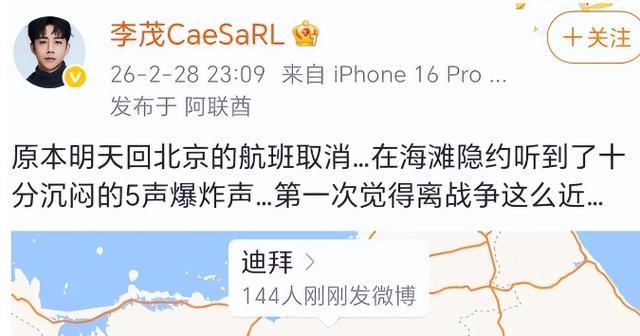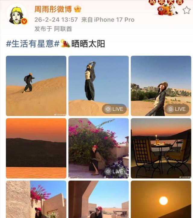 演员周雨彤也卷入了此次风云,她在2月24日就赶赴中东旅行,还在社交平台共享过在阿联酋沙漠、阿布扎比旅社的旅行像片。