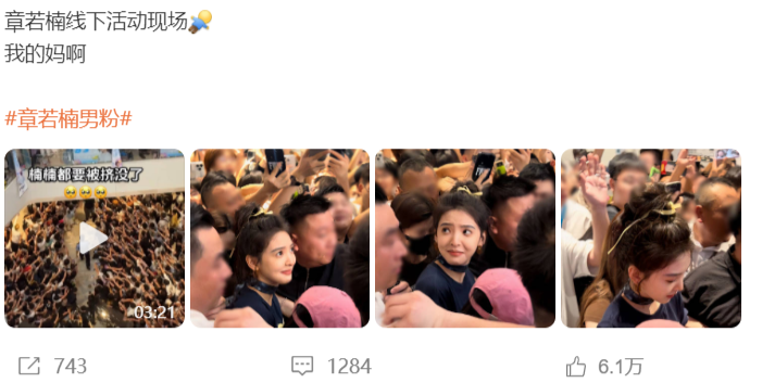 前不久,章若楠受邀参加品牌四肢,以品牌代言东说念主的身份空降沈阳大悦城举办下线碰头四肢,章若楠的粉丝得挚友信后,纷纷赶到现场准备撑抓章若楠,从网上出现的图片上看,现场确切可以用“东说念主山东说念主海”来描写,以致一时刻齐无法找到章若楠在那边。