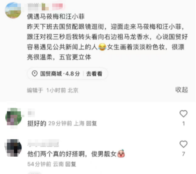就在各人翘首以盼两东说念主婚典的时候,4月14日,有网友在北京国贸偶遇了汪小菲和马筱梅。