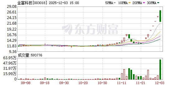 金富科技(003018)早盘一度涨停,午后震憾下探,尾盘跌停,献技“六合板”走势。此前,该股已持续7个交游日涨停。