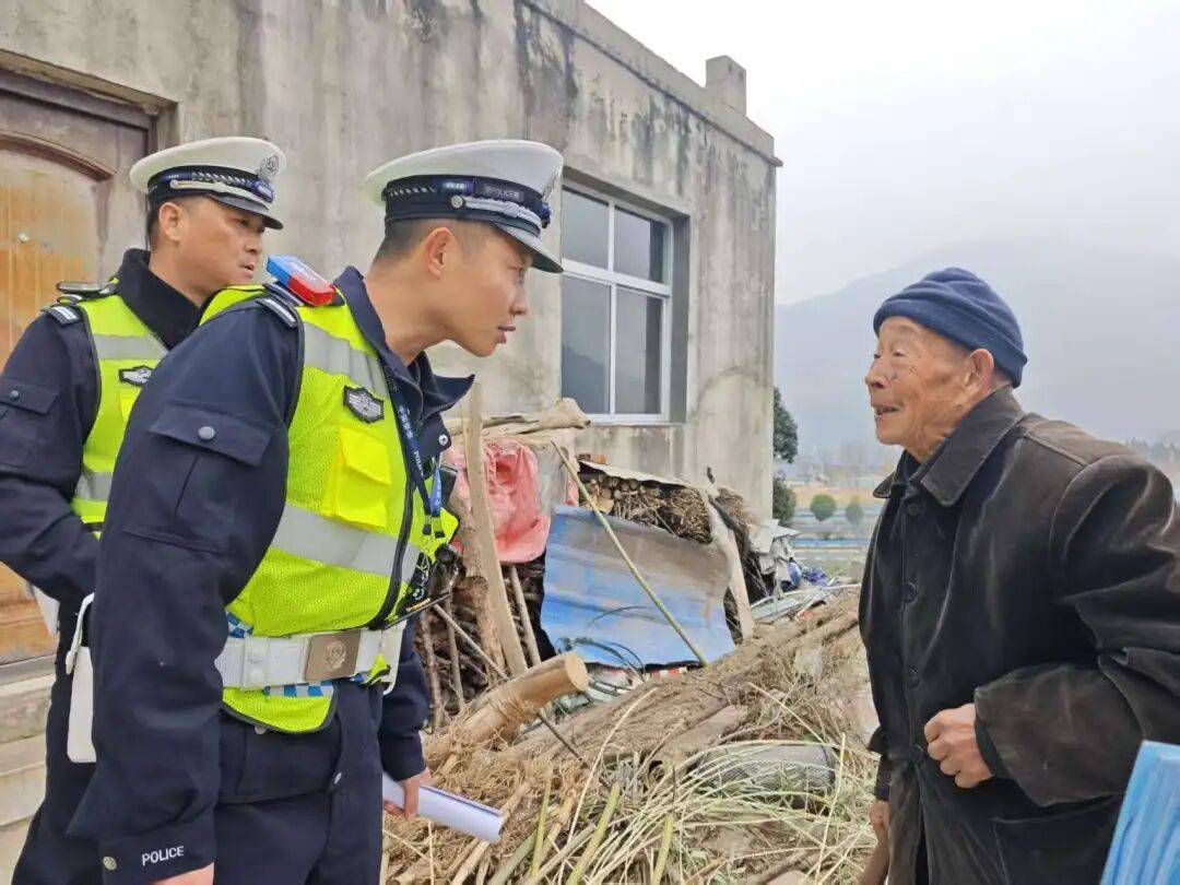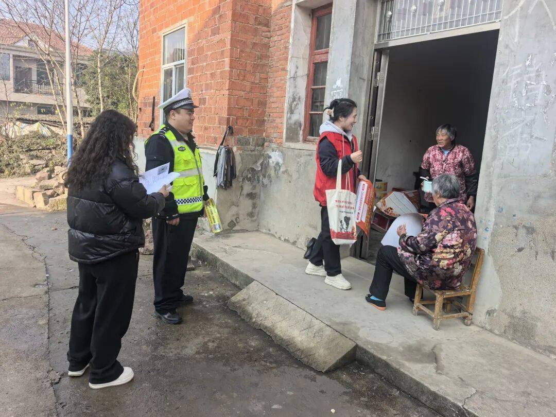 ▲襄阳交警走进高速沿线村落,入村入户开展恶劣天气安全出行提醒。